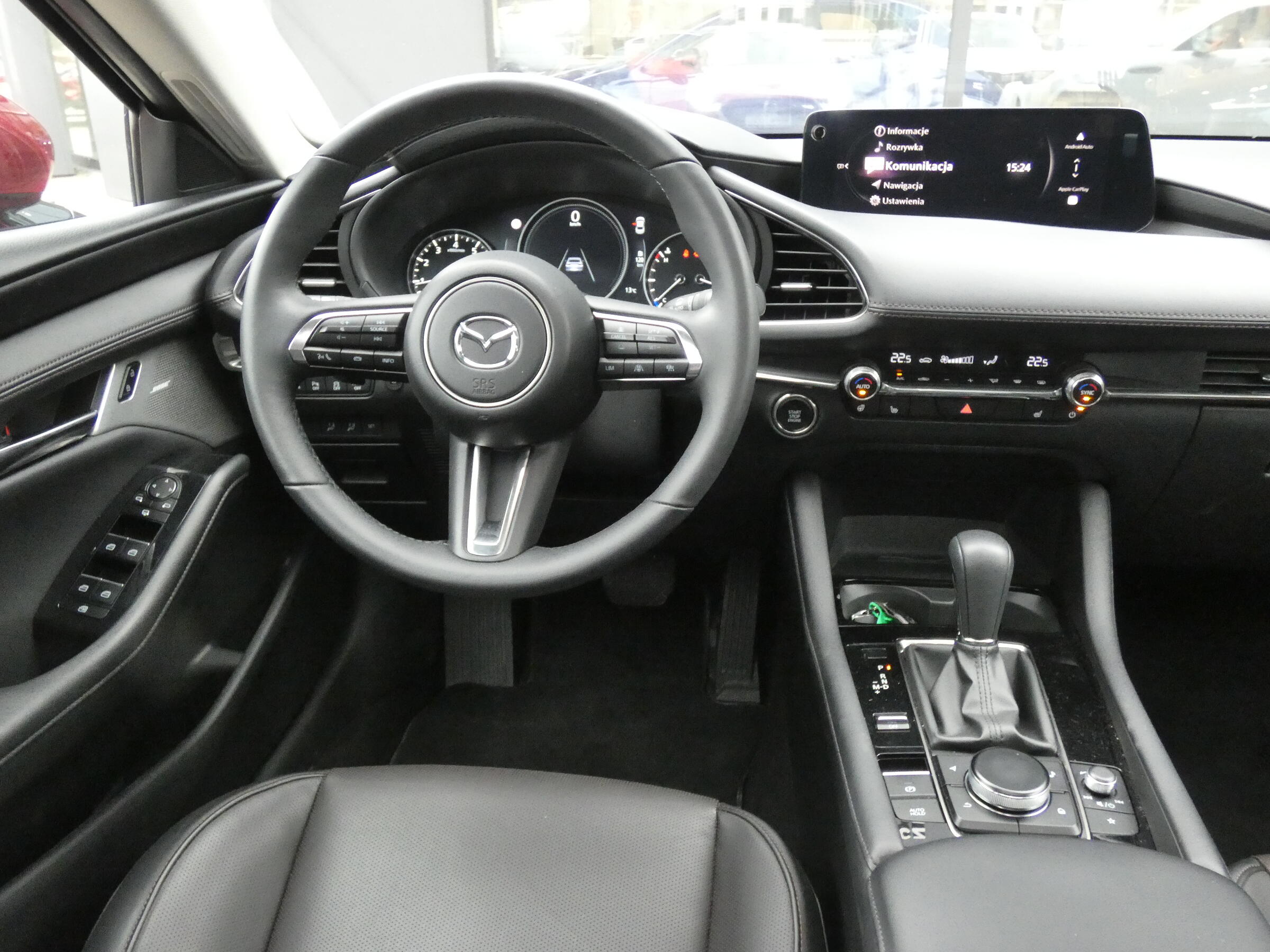 • Multimedialny system rozrywki i łączności Mazda Connect (z ekranem 10,25")• Kolorowy wyświetlacz head-up na przedniej szybie• Cyfrowe zegary (7")• System nawigacji Mazda• Ergonomiczny system sterowania HMI (pokrętło wielofunkcyjne)• System audio z radiem FM i radiem cyfrowym (DAB)• Zestaw głośnomówiący Bluetooth®• 2 porty USB-C• Gniazdo 12V• Przestrzenny system nagłośnieniowy Bose® (12 głośników)• Apple CarPlay® i Android Auto® (również z obsługa bezprzewodową)• Ładowarka indukcyjna (Qi)• Usługi połączone MyMazda