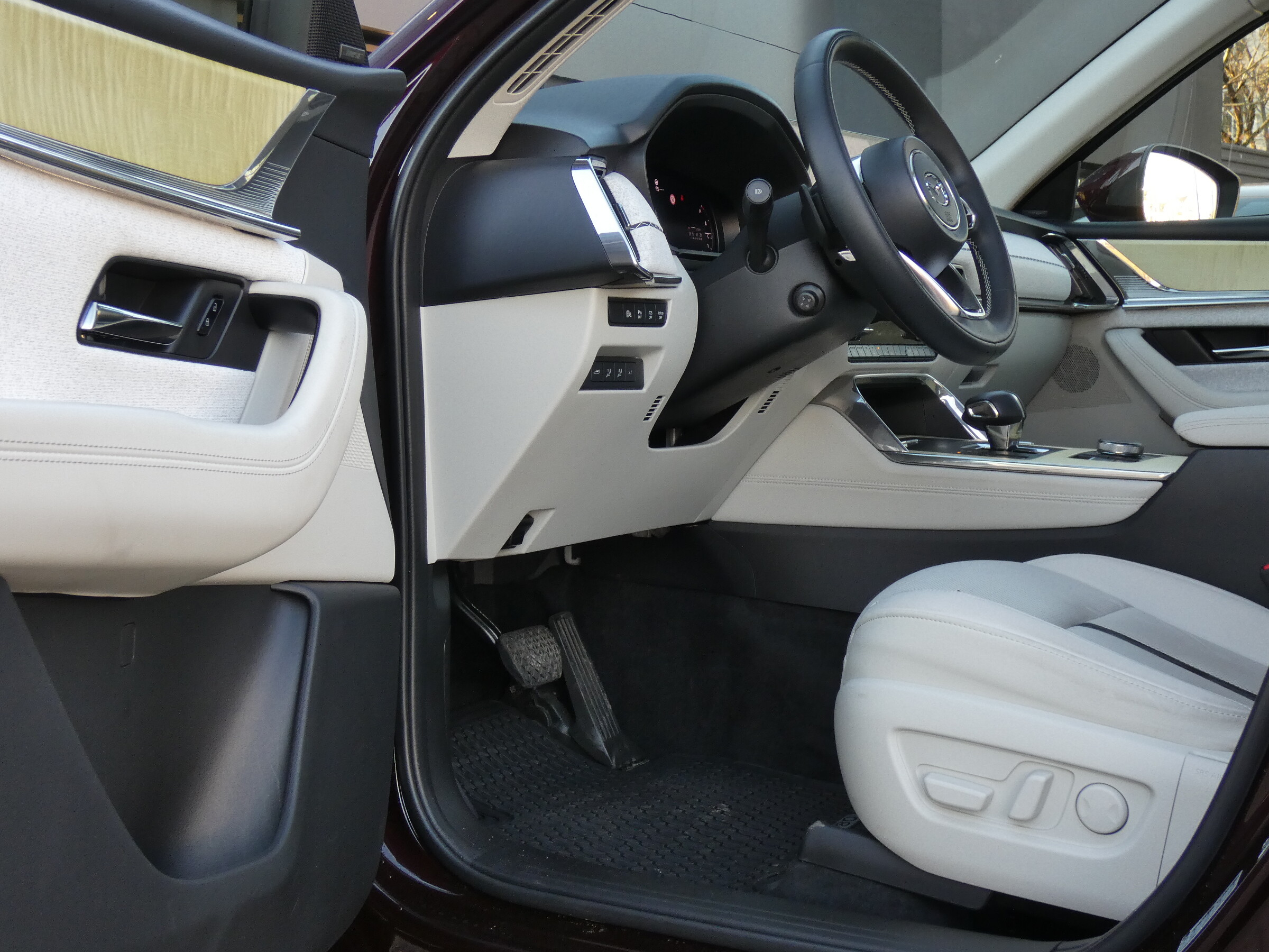 • 2 porty USB-C• 2 gniazda 12V• System audio z radiem FM i radiem cyfrowym (DAB)• 8 głośników• Przestrzenny system nagłośnieniowy Bose® (12 głośników)• Zestaw głośnomówiący Bluetooth• Apple CarPlay® i Android Auto® • System nawigacji Mazda • Sterowanie głosowe Amazon Alexa