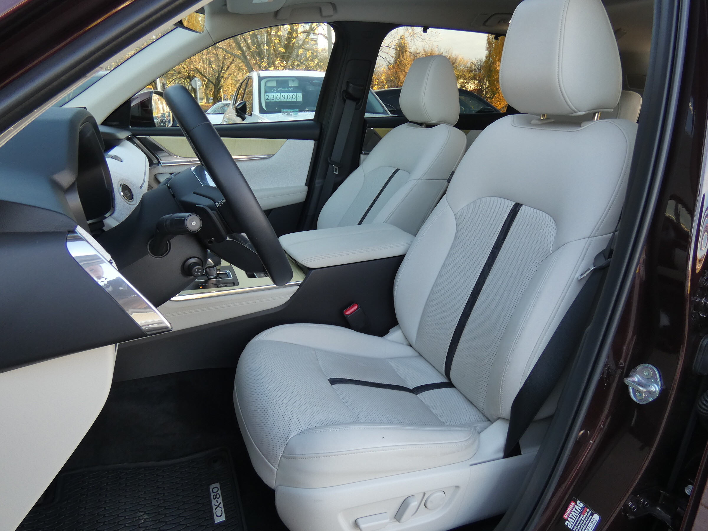 • Tapicerka skórzana w kolorze białym Nappa• Podsufitka jasna• Multimedialny system rozrywki i łączności Mazda Connect (z ekranem 12,3")• Elektrycznie sterowane szyby przednie i tylne• Lusterko wsteczne elektrochromatyczne • Skórzana kierownica w kolorze czarnym z białymi przeszyciami• Elektryczna regulacja kierownicy• Skórzana dźwignia zmiany biegów• Kanapa w II rzędzie z podłokietnikiem, dzielona 60:40