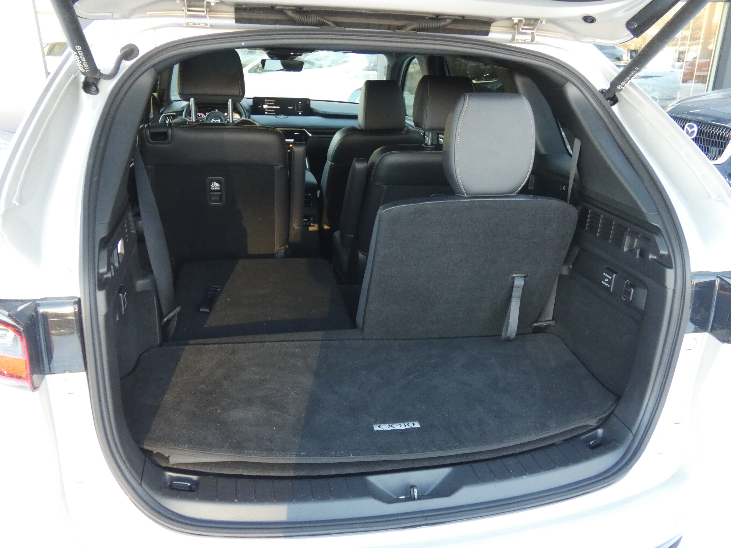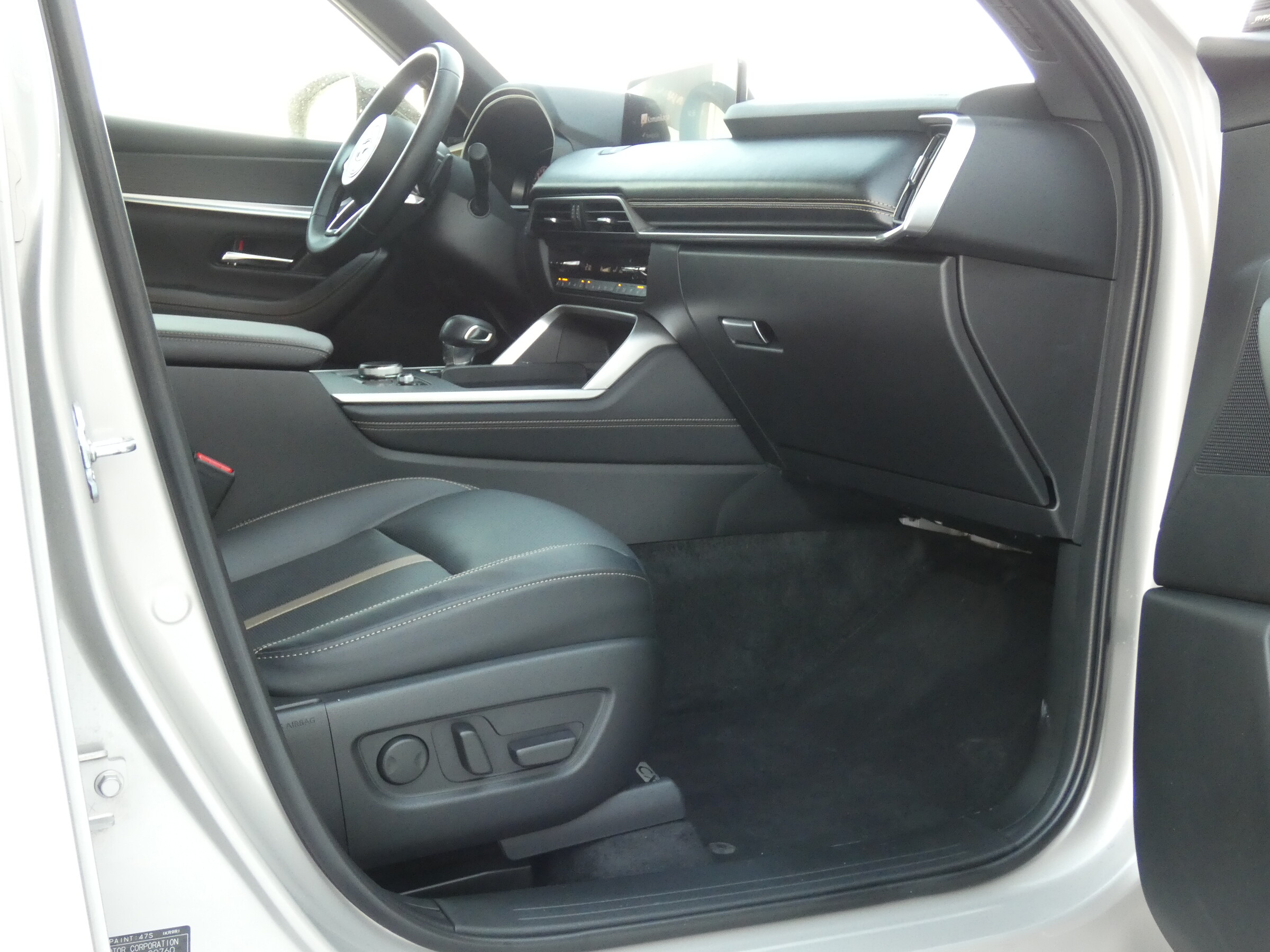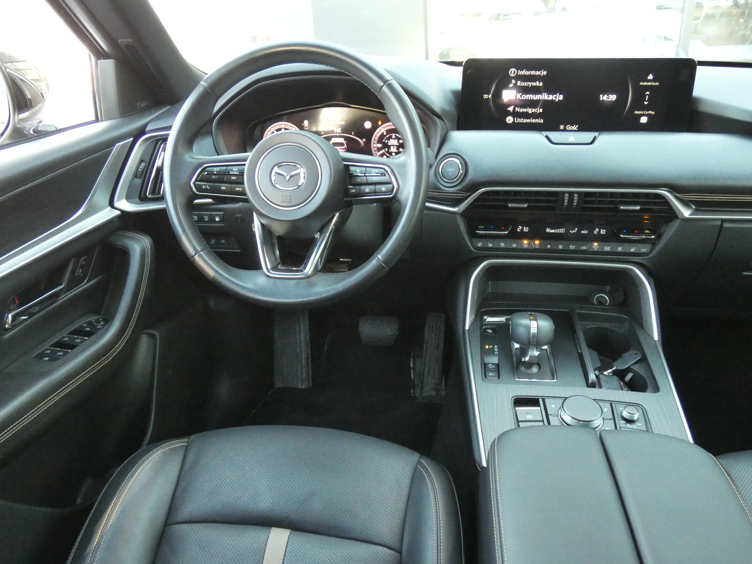 • Tapicerka skórzana w kolorze czarnym Nappa• Podsufitka czarna• Regulacja fotela kierowcy• Regulacja fotela pasażera• Regulacja fotela kierowcy i pasażera (w 8-kierunkach) z funkcją regulacji odcinka lędźwiowego• Multimedialny system rozrywki i łączności Mazda Connect (z ekranem 12,3")• Elektrycznie sterowane szyby przednie i tylne• Skórzana kierownica• Elektryczna regulacja kierownicy• Skórzana dźwignia zmiany biegów• Kanapa w II rzędzie z podłokietnikiem, dzielona 60:40• Podgrzewane fotele w II rzędzie (2 miejsca)• 2 fotele w III rzędzie• Klimatyzacja automatyczna (trzystrefowa)• Nawiewy dla II i III rzędu siedzeń• Przednie fotele wentylowane• Kolorowy wyświetlacz head-up• Centralny podłokietnik• Cyfrowe zegary (12,3")• Ładowarka indukcyjna• Gniazdo prądu przemiennego 1500W (tylko wersja PHEV)