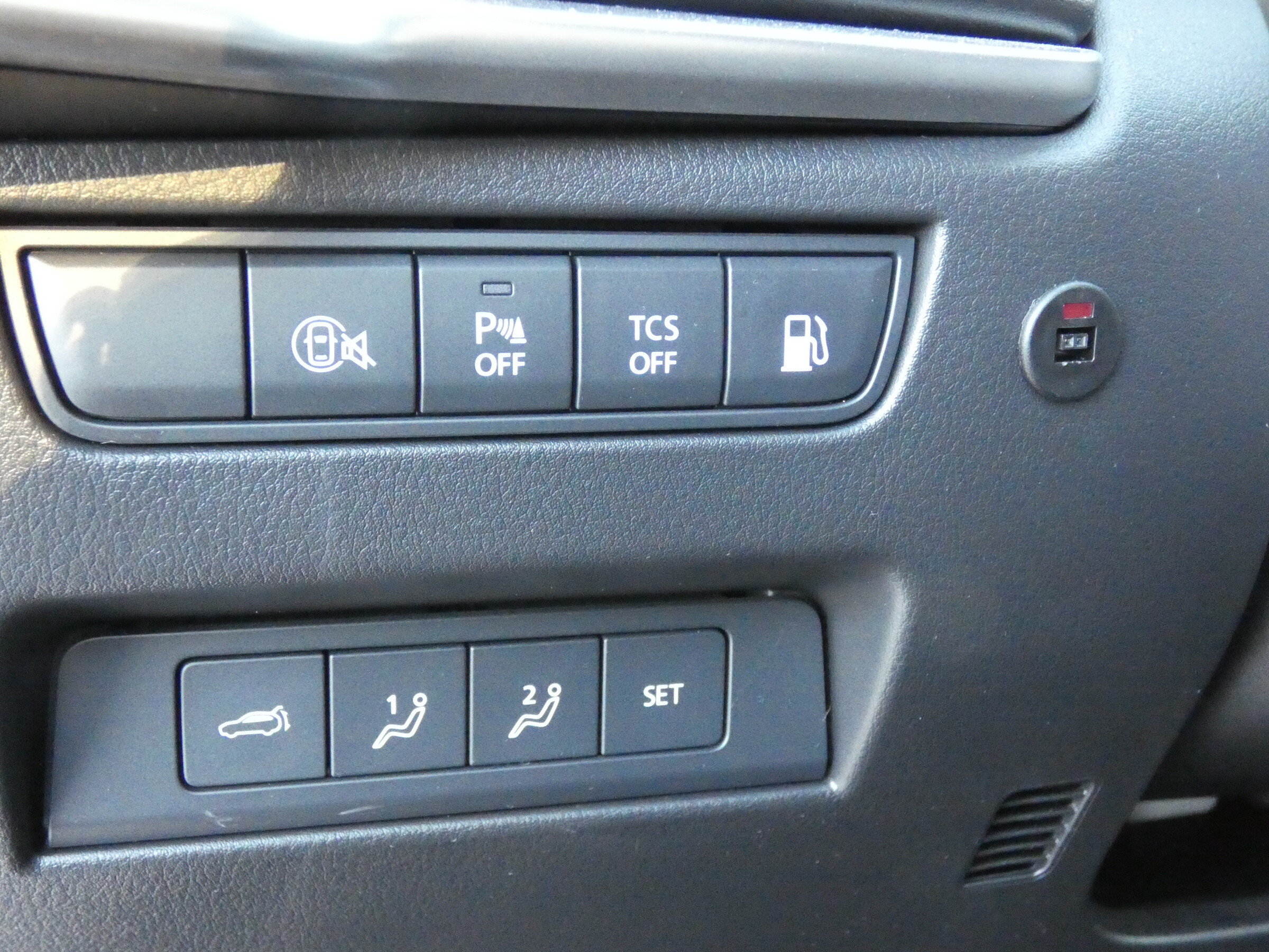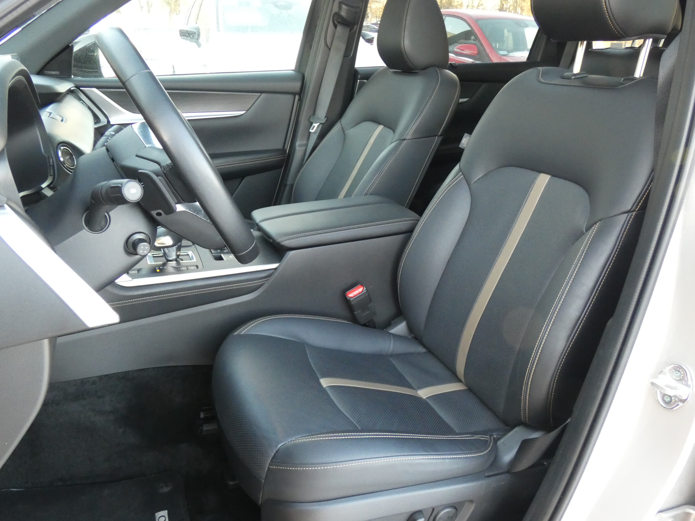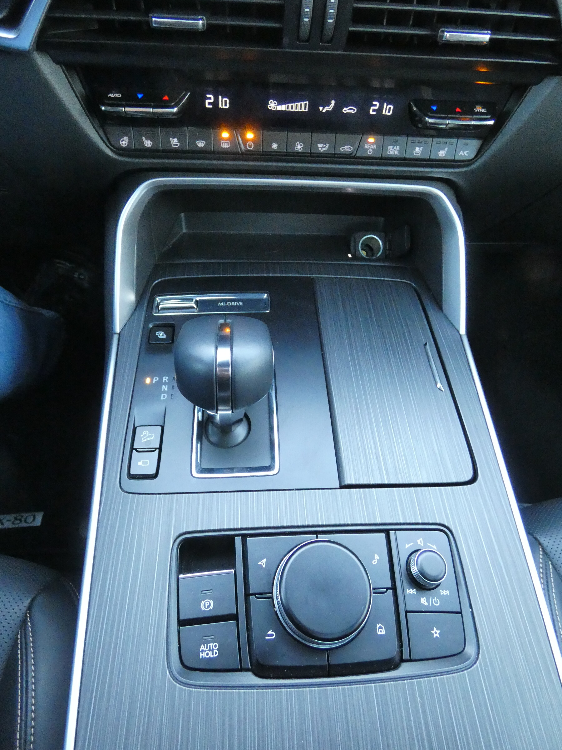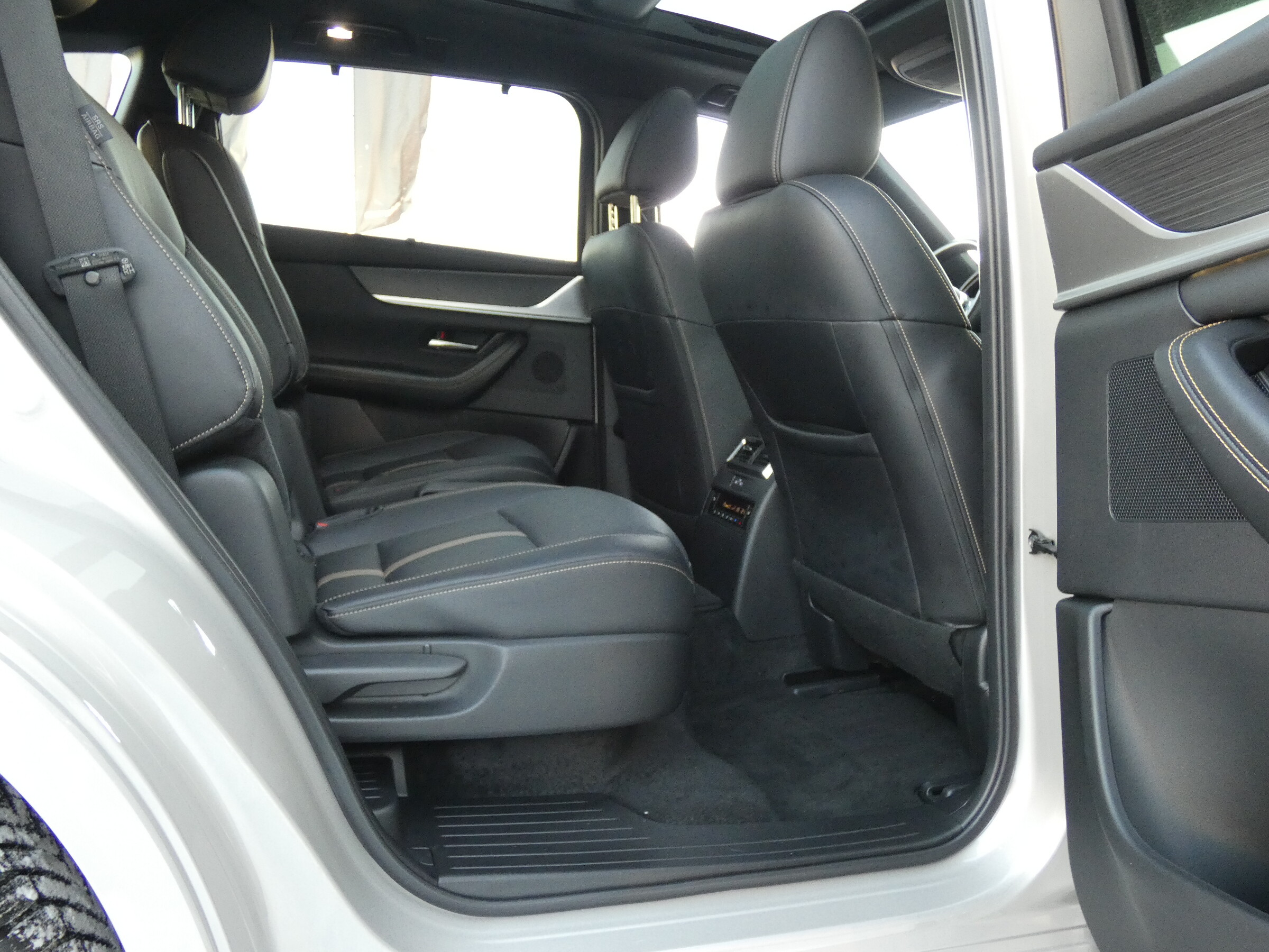 • Tapicerka skórzana w kolorze czarnym Nappa• Podsufitka czarna• Regulacja fotela kierowcy• Regulacja fotela pasażera• Regulacja fotela kierowcy i pasażera (w 8-kierunkach) z funkcją regulacji odcinka lędźwiowego• Multimedialny system rozrywki i łączności Mazda Connect (z ekranem 12,3")• Elektrycznie sterowane szyby przednie i tylne• Skórzana kierownica• Elektryczna regulacja kierownicy• Skórzana dźwignia zmiany biegów• Kanapa w II rzędzie z podłokietnikiem, dzielona 60:40• Podgrzewane fotele w II rzędzie (2 miejsca)• 2 fotele w III rzędzie• Klimatyzacja automatyczna (trzystrefowa)• Nawiewy dla II i III rzędu siedzeń• Przednie fotele wentylowane• Kolorowy wyświetlacz head-up• Centralny podłokietnik• Cyfrowe zegary (12,3")• Ładowarka indukcyjna• Gniazdo prądu przemiennego 1500W (tylko wersja PHEV)