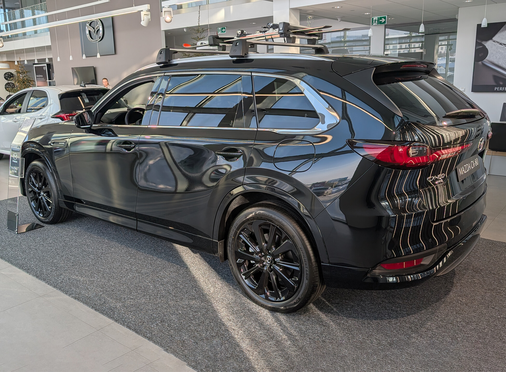 Oferta połączona z dodatkowymi korzyściami: Pakiet Ochrona (mata ochronna bagażnika, dywaniki gumowe, zaawansowany system immobilizera, odstraszacz chroniący pojazd przed gryzoniami, kamizelka odblaskowa, apteczka) (-3 725 zł) + Komplet kół zimowych Yokohama 235/50R20104V XL BluEarth Winter V906 [C, B, B (70dB)] + oryginalne felgi aluminiowe Mazda o wzorze 45 (Black Matte) +czujniki systemu TPMS (4 szt.) (-15 440) + Dywaniki welurowe Luxury (-540 zł)